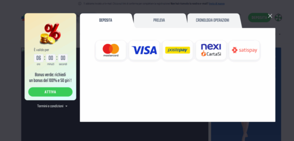 Ho depositato con sei metodi diversi. Crypto (USDT-TRC20) arriva in 8-12 secondi. Postepay 50€ accreditati in 40 secondi. Skrill istantaneo. L’unico lento è stato bonifico bancario (18 ore, ma lo sapevamo).